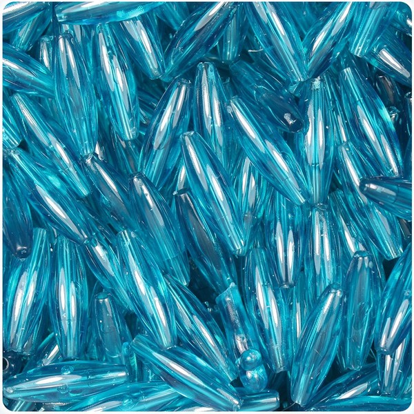 BeadTin Teal Transparent 19mm Spaghetti Plastic Craft Beads (150pcs)