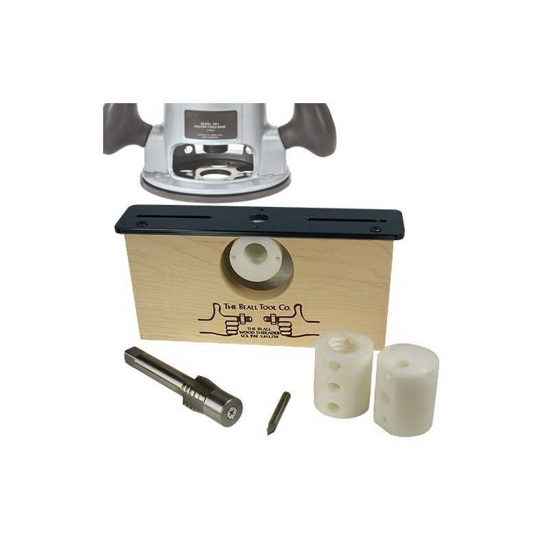 Produce smooth threaded wooden clamps, vises, and unique gift items with this simple wood threading system! Using a solid carbide router bit, the Beall Wood Threader mills the male threads precisely. Mount your router to the jig, feed dowel stock through the self-guiding insert, and cut male threads in hard wood like butter - with no torn threads. Matching hand tap for female threads included. 3 Size Kit Includes: The jig, hardware, router bit, inserts & taps for doing 1/2", 3/4" & 1" sizes, and instructions. Specifications 1/2" Threader is 8 TPI (Threads Per Inch) 3/4" & 1" Threaders are 6 TPI Optional Nut Template Guide - A very handy pattern for creating several sizes of wooden hex nuts. The Nuts & Bolts of Woodworking Book - Sheds further light on this excellent tool and is fertile with projects and ideas. A highly recommended companion for the wood threading kit. Made in the USA.