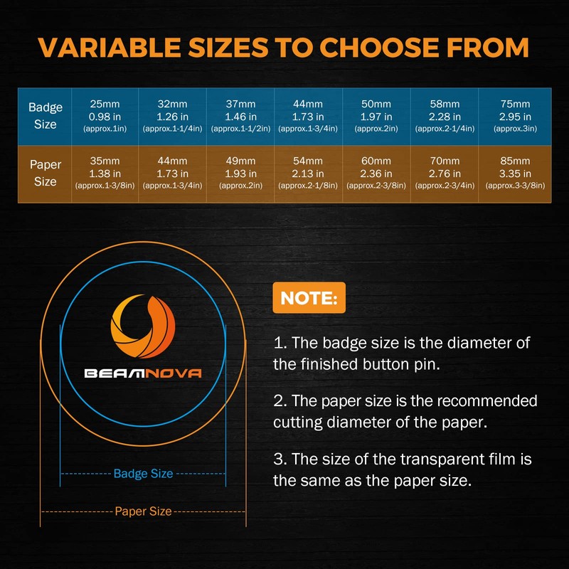 2. The machine is not included. Please search BEAMNOVA pin button maker for the machine.
