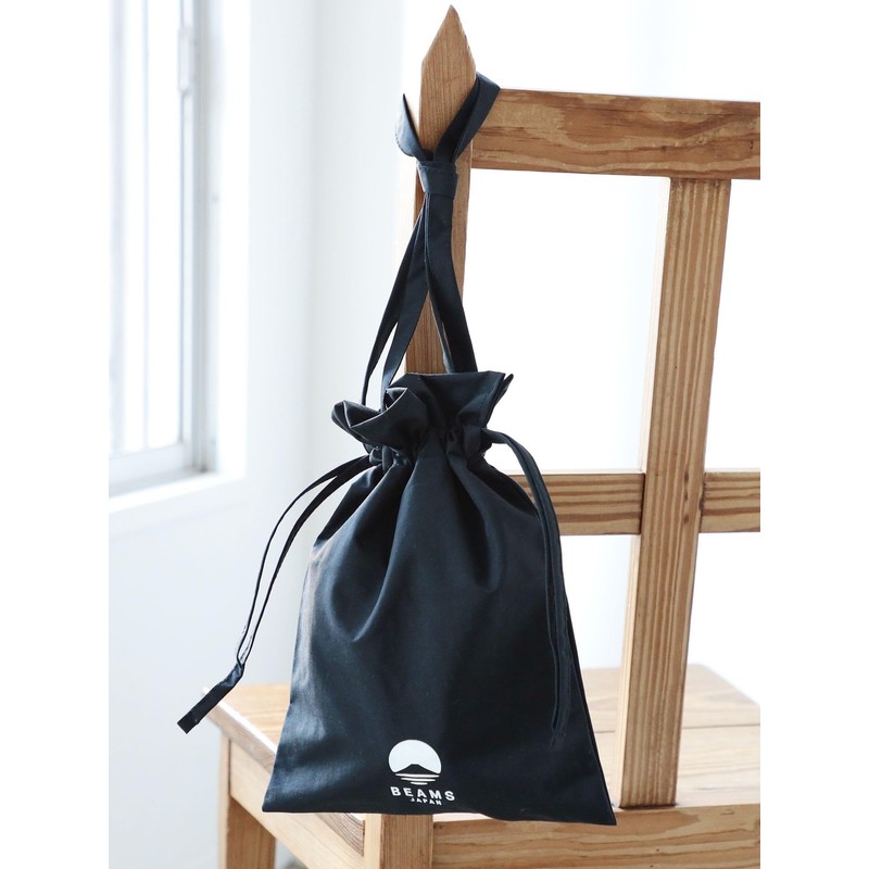 Beams Japan original drawstring shoulder bag with lightweight and durable nylon fabric.