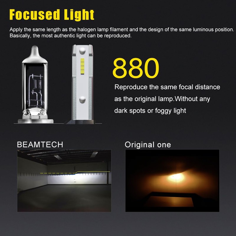 BEAMTECH 880 Bulbs, S1 Series 899 885 893 Fanless 300% Brighter Fog Light