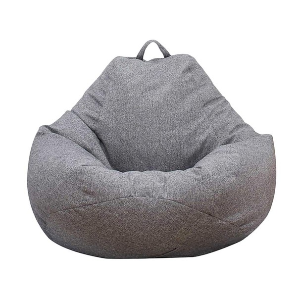 Bean Bag Cover with Handle and Side Pockets Lazy Bag Cover Washable Soft Fabric (Grey 80X90cm)
