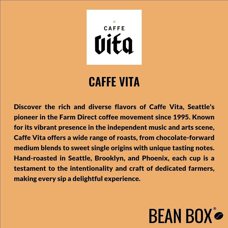 - Ships direct, freshly roasted from Caffe Vita guaranteeing freshness