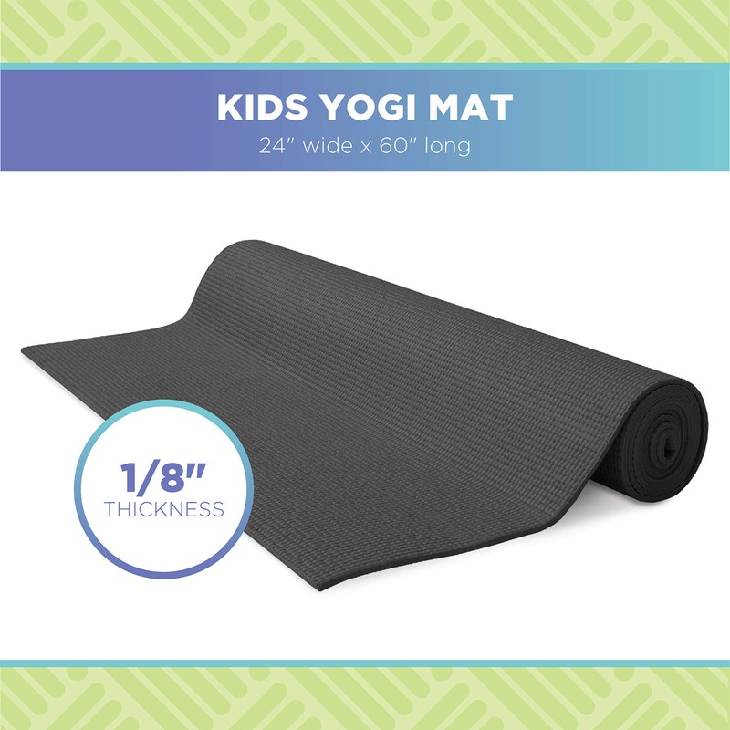 Kid's Sticky Yoga Mat goes Eco! For those who want a more eco-friendly mat, our fantastic Kid's Sticky Yoga Mat is environmentally friendly and a perfect easy carry size for kids ( 24 inches wide x 60 inches long).