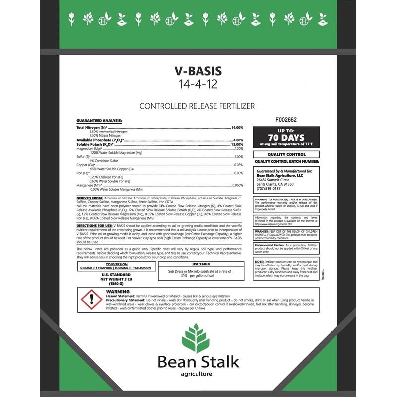 Bean Stalk V-Basis Controlled Release ferilizer for Veg -3 lb Pouch