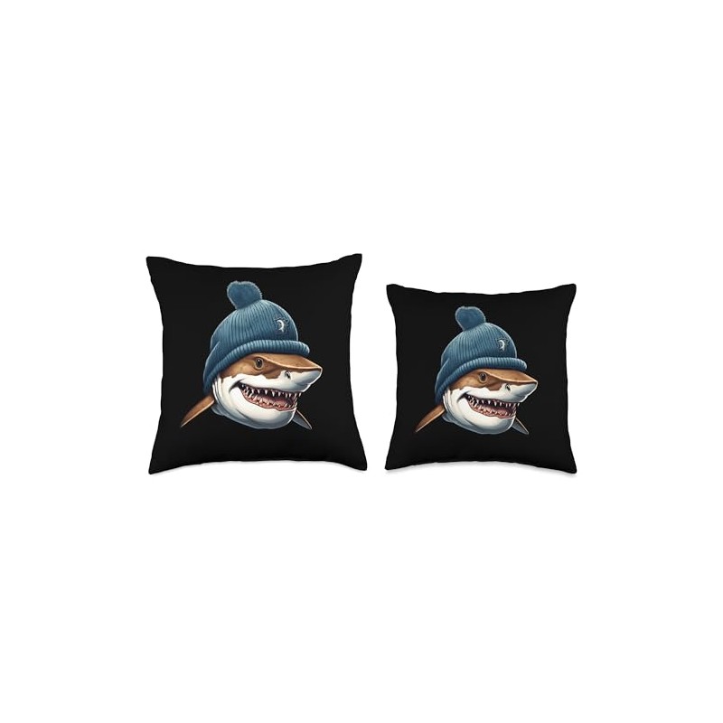 Beanie Knitted Cap Hat Shark Lover Shark Beanie Knit Cap Hat Wool Winter Fall Outdoor Throw Pillow, 16x16, Multicolor