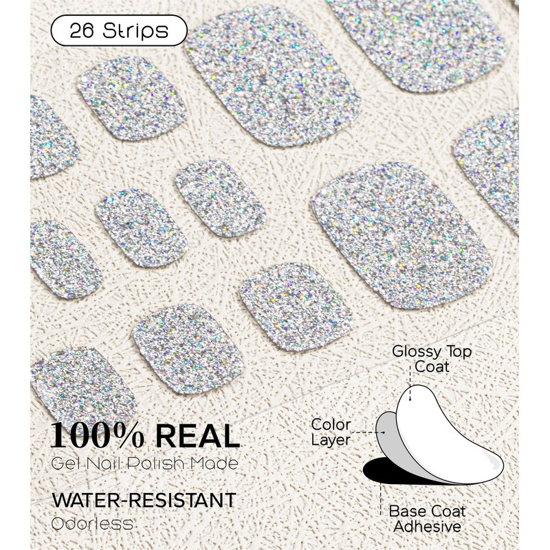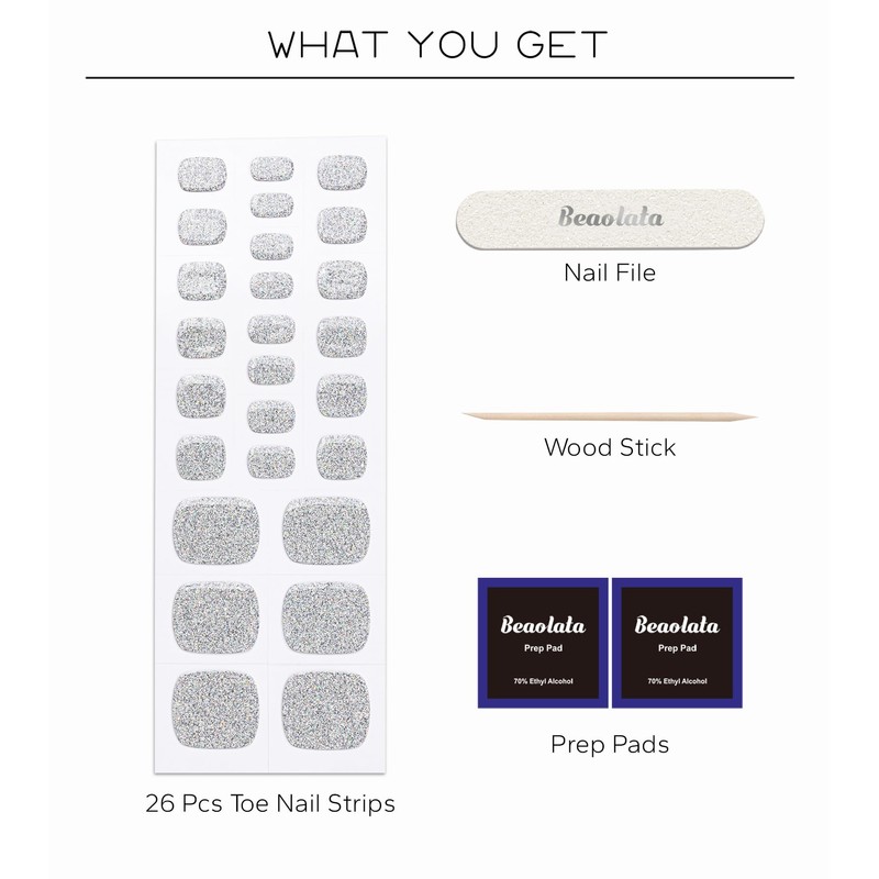 Beaolata Semi Cured Gel Nail Strips - 26 PCS Salon Quality Toe Gel Nail Stickers for All UV Light - Longlasting & Easy Remove Toe Wraps Art Kit for Women (Starry Silver)