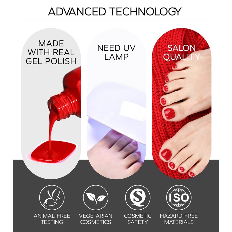 - Natural Fit & Glossy: The semi cured gel material gently conforms to toe nail curves during curing. When fully set with UV/LED light, they maintain shine for up to 21 days and resist daily wear.