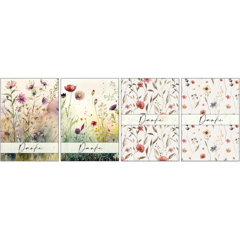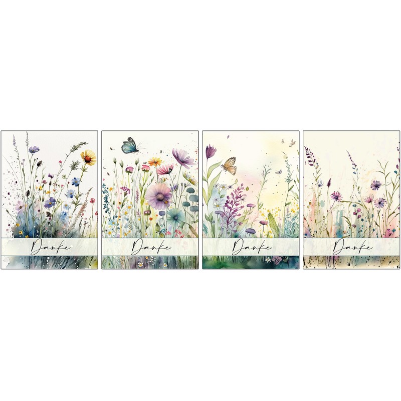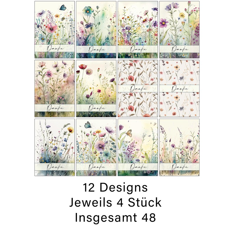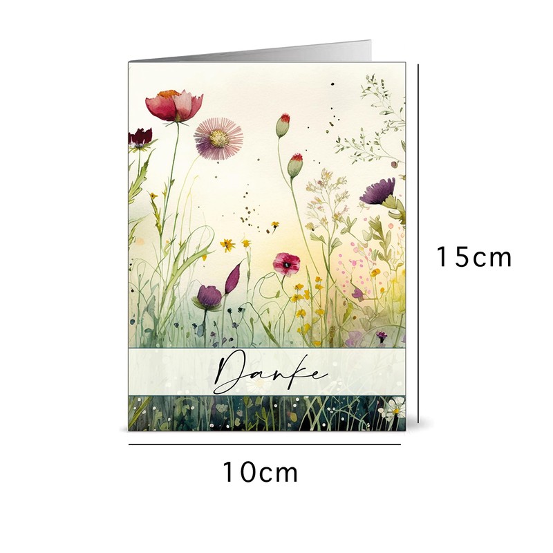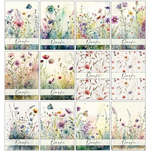 - Set of 48 thank you cards featuring wild meadows and flowers drawn on the front in watercolors