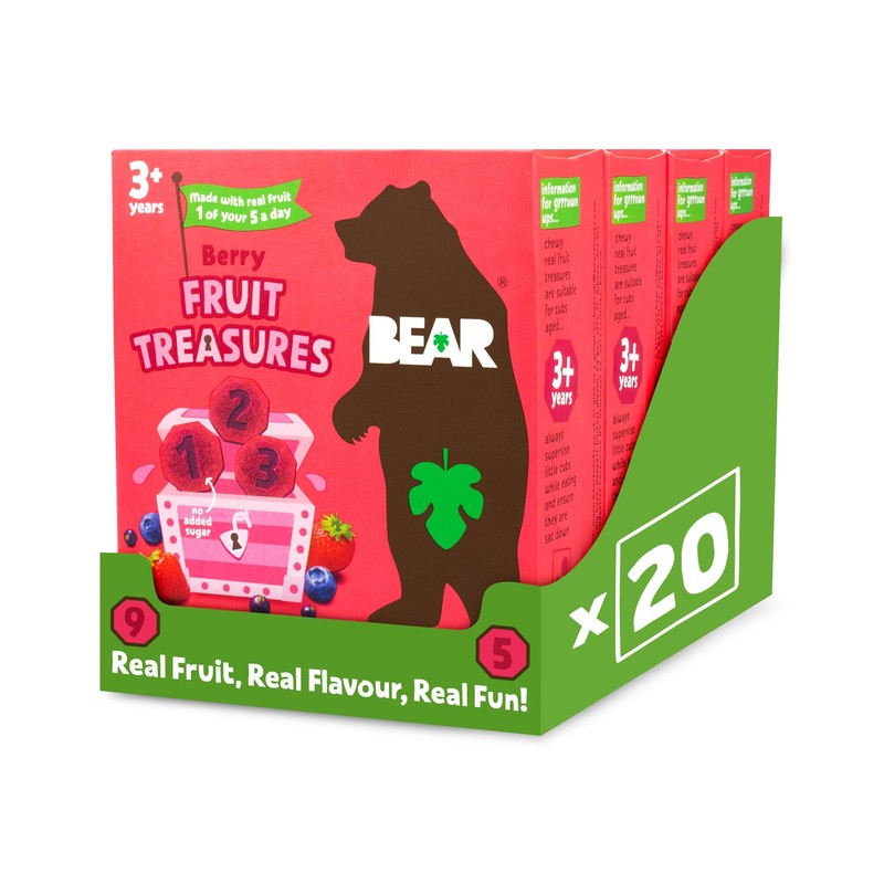 BEAR Berry FRUIT TREASURES - Delicious Real Fruit - Suitable for 3+ years - Healthy - 4 x 5 (20 packs)