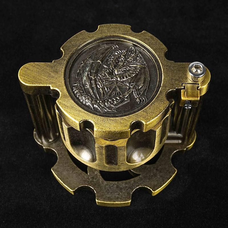 Bear Dice: Rotating Revolver Cylinder Container & 7 Cool Solid Metal D&D Bullet Dice - Durable Zinc Alloy:_paleo-nickel