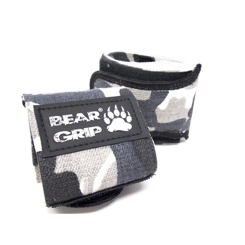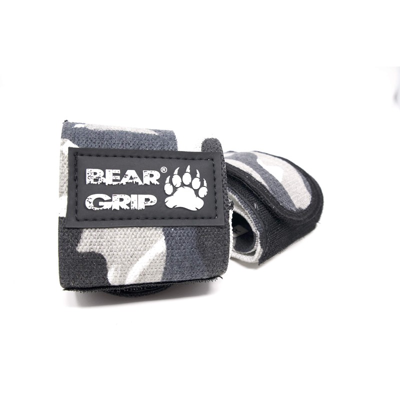 BEAR GRIP - Premium Weight Lifting Wrist Support Wraps, (Sold in pairs) (Camo/Grey/Edge)