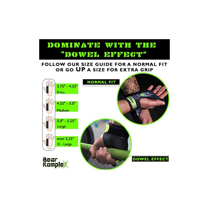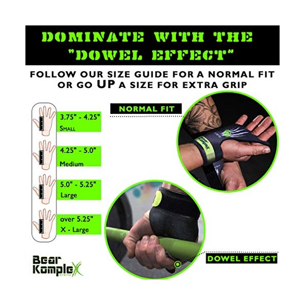 • 🙌 DOMINATE EFFECTIVELY: To ensure you get the best out of your Diamond Hand Grips, make sure to measure your hands following the instructions in the image block. Diamond Grips come in small thru extra large. The holes will stretch slightly with use and can be stretched to fit larger fingers. We are so confident you will love our Bear KompleX products, that if your expectations are not met for any reason, we will refund you within 60-days of purchase.