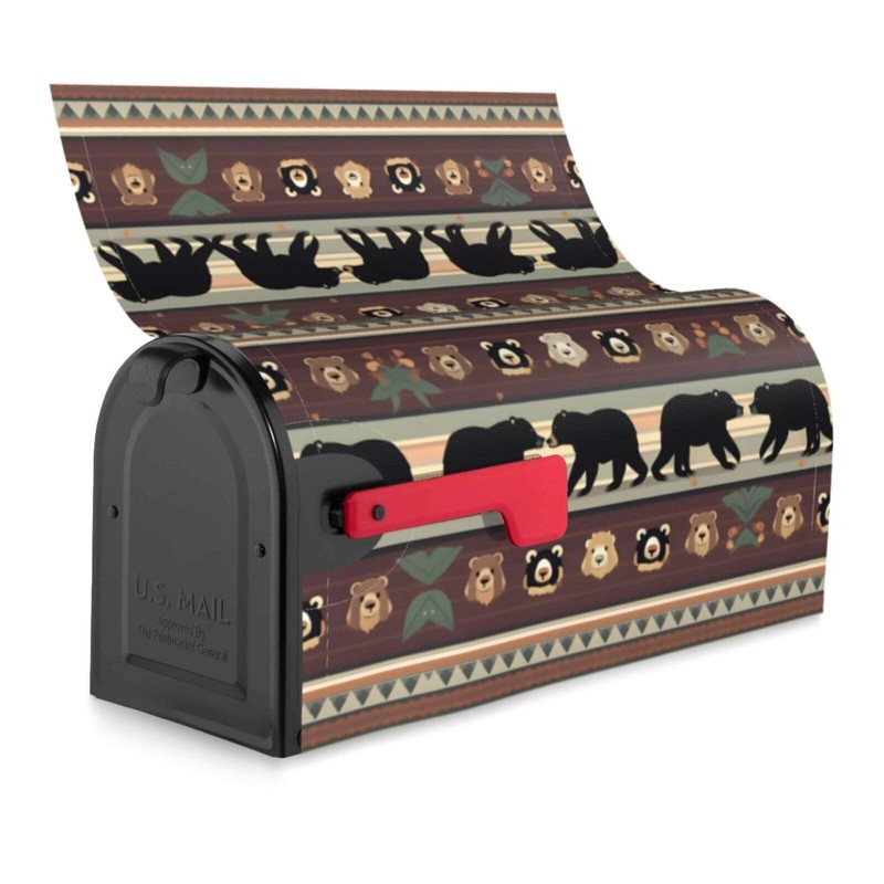 Bear Print Mailbox Covers with Magnetic Standard Size 18x21 and 21x25.5In for Garden Yard