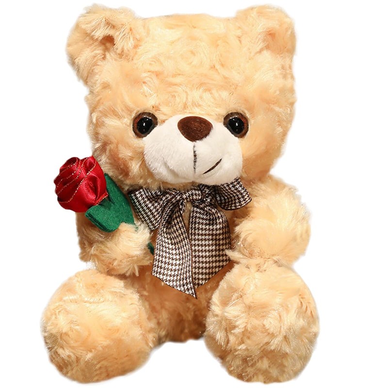 Bear Stuffed Animal Plush Toy for Valentine Day, Cute 9.8" Teddy Bear Plushie with Rose Soft Small Cuddly Bear Doll, Gifts for Girlfriend Boyfriend,Yellow
