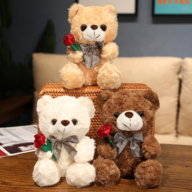 - WHITE TEDDY BEAR: Adorable bear with bow holding a rose, designed with cute style, lovely, exquisite and vivid, which can convey love for you and accompany your lover