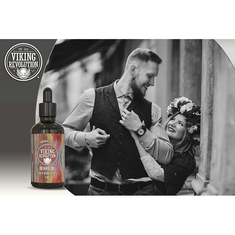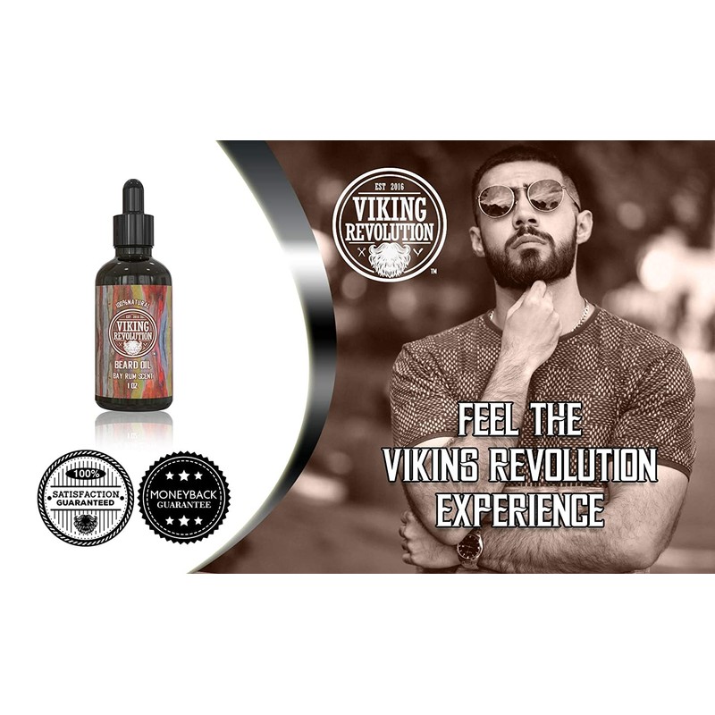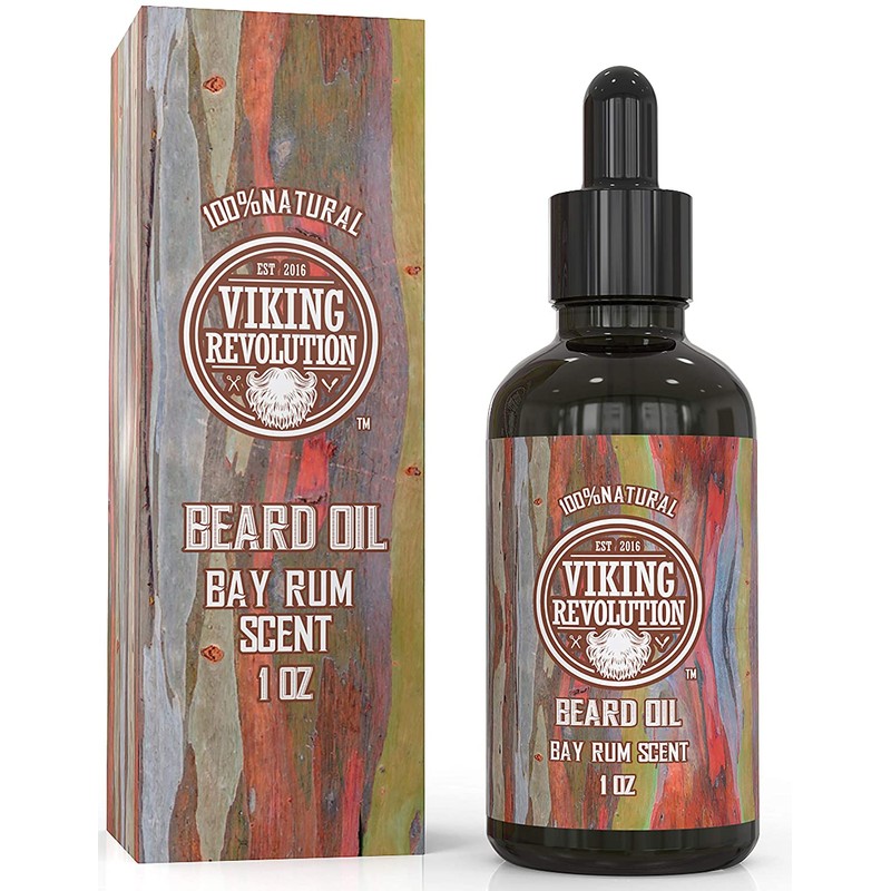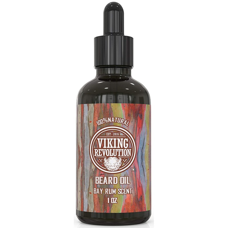 Beard Oil Conditioner All Natural Bay Rum Scent Organic Argan & Jojoba Oils - Promotes Beard Growth - Softens & Strengthens Beards and Mustaches for Men 1 Pack by Viking Revolution Store