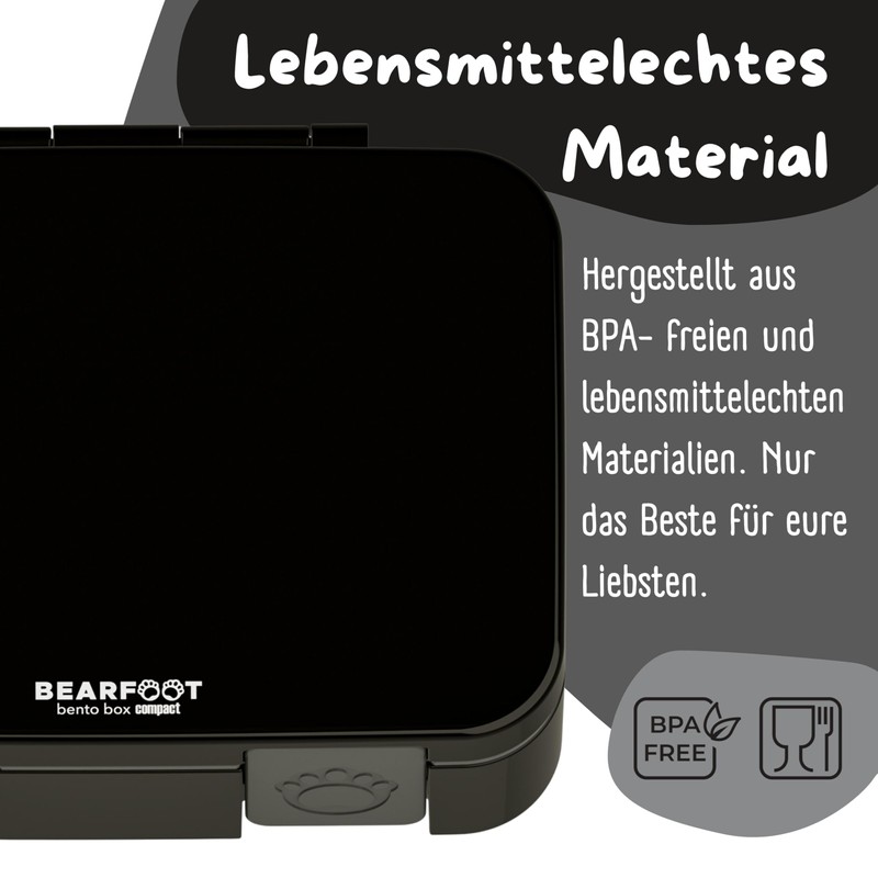 BEARFOOT Bento Box Compact BPA-Free Children's Lunch Box for School & Nursery, Leak-Proof Lunch Box for Girls and Boys, Practical, Lightweight and Compact (Black, 650 ml)