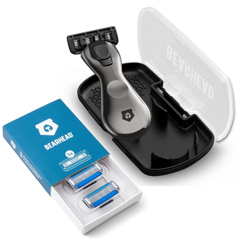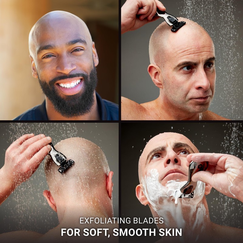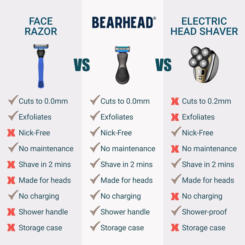 The BEARHEAD Head & Face Razor is designed for shaving heads. The 5 precision blades gently exfoliate your skin as the Skull Shaver Suspension adapts to the contours of your head for a super-close shave. The SureGrip handle gives you a quick and easy shave in the shower.