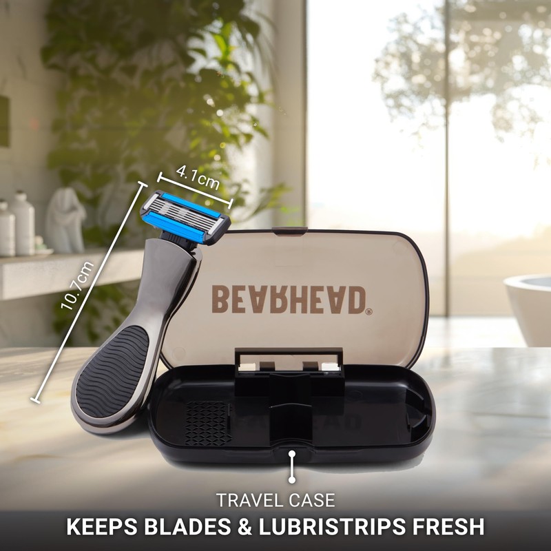 BEARHEAD Head Razor for Men + 4 Refill Blades | Skull Shaving Razor for Bald Men | Precision Blades Nick-Free | Sure-Grip Shower Handle | Easy Clean Blades | Travel Case