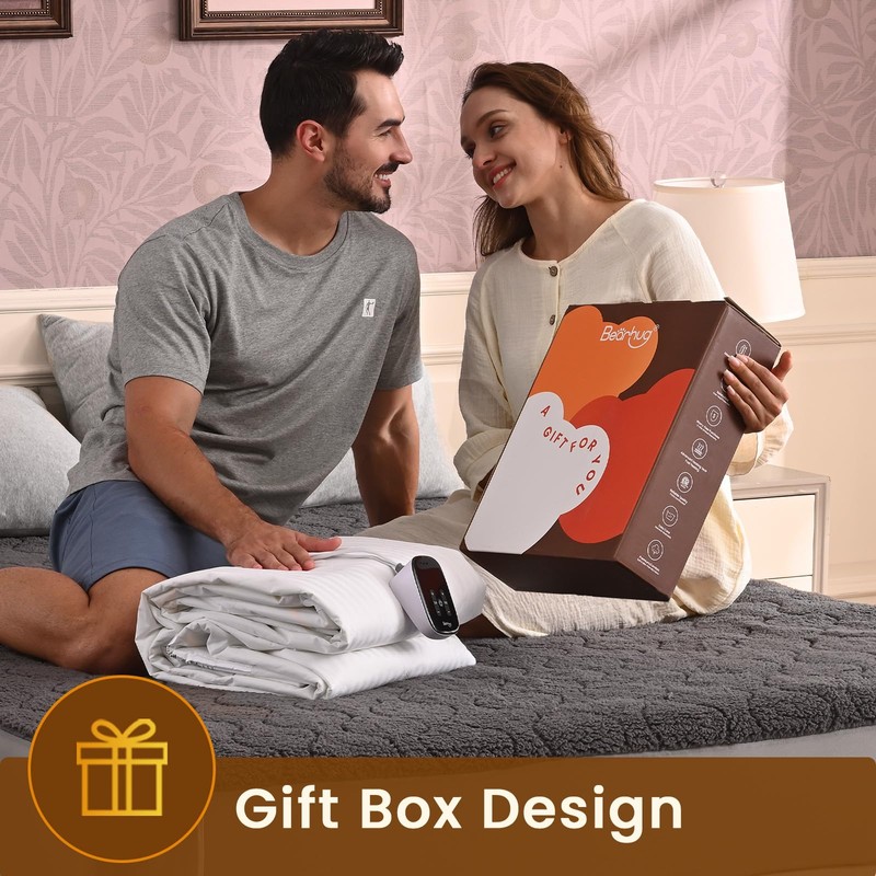 Bearhug Electric Heated Mattress Pads King Size Dual Controllers 78”×80” Sherpa Bed Warmer 21” Deep Pocket 10 Heat Settings 12-Hour Timer Machine Washable Gray