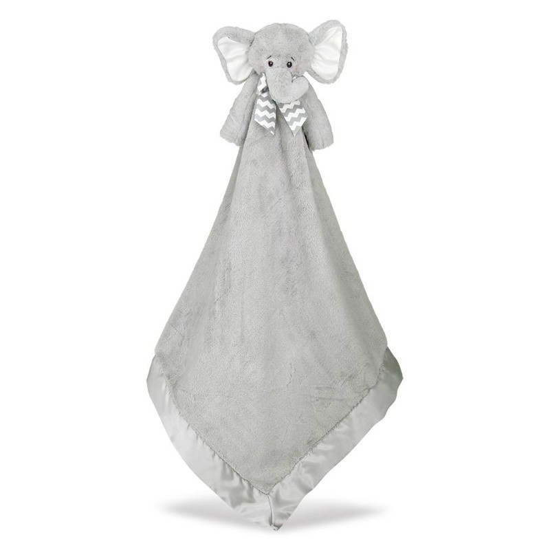 - CUTE AND CUDDLY: Super soft ultra premium grey velour security blanket with grey satin lining, combined with a cute elephant stuffed animal head and arms, machine washable