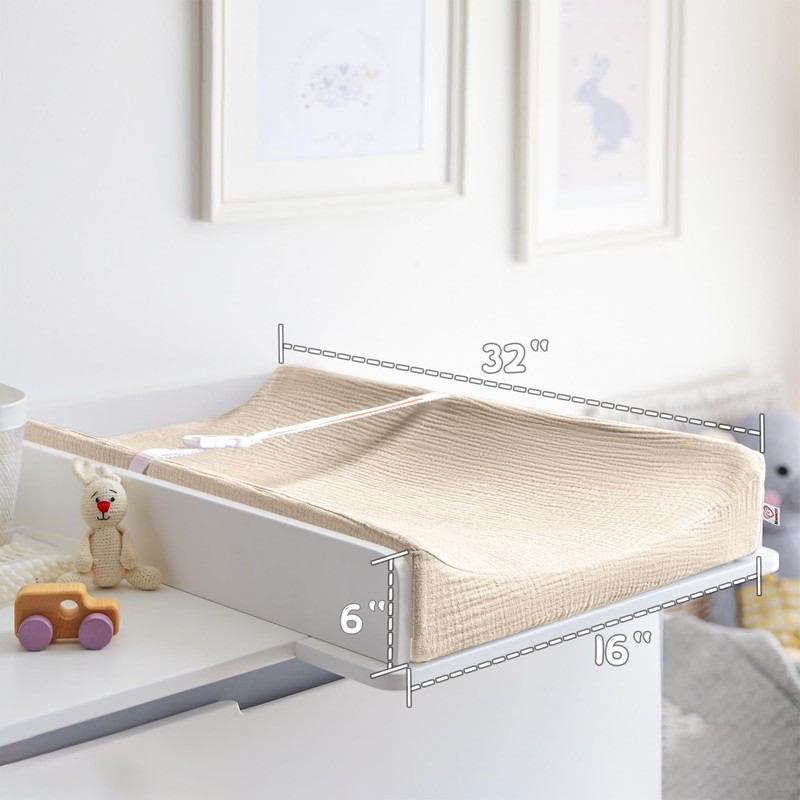 - Algodón de muselina suave y transpirable: hecho de 100% algodón muselina, las fundas de cojín cambiador de musgo proporcionan una superficie suave y un tacto cómodo para la delicada piel de tu bebé. La tela ligera y transpirable garantiza una comodidad óptima, manteniendo a tu bebé fresco y cómodo durante los cambios de pañales.