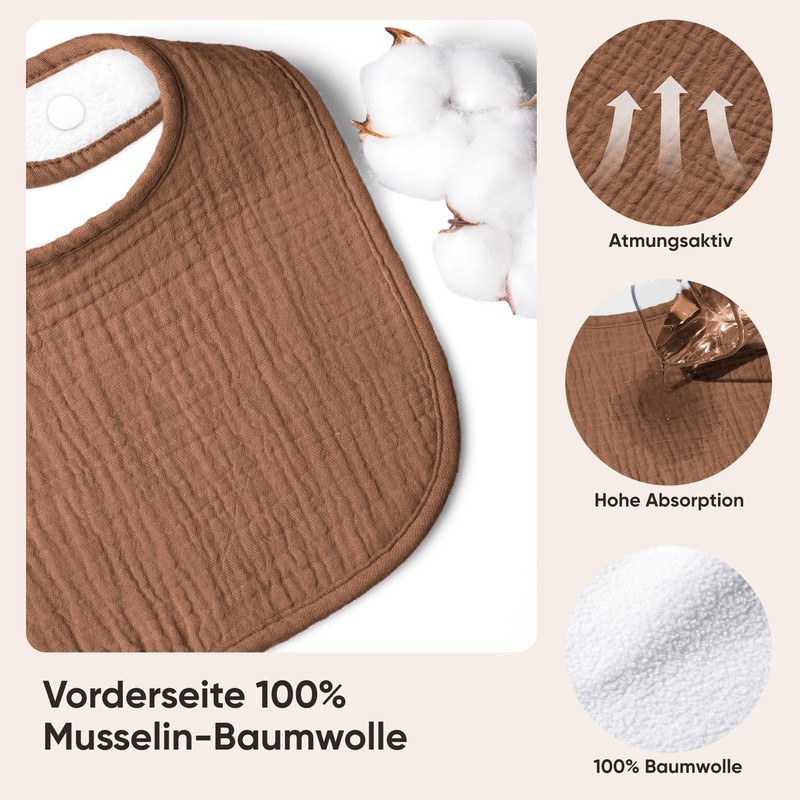 - 100% Cotton: Our Bearmoss muslin baby bibs are made with 100% cotton material that is soft and gentle for your baby's delicate skin. With muslin fabric, making them lightweight and breathable, also perfect for everyday wear.
