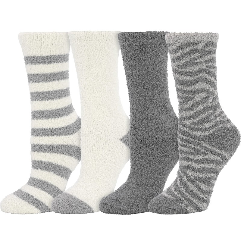 BEARPAW 4 Pair Pack Cozy Super Soft Lounge Socks Multi Pattern Crew Socks (GREY)