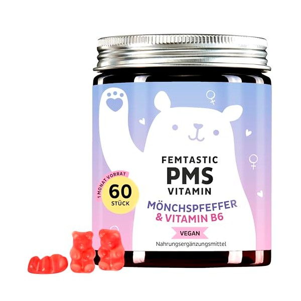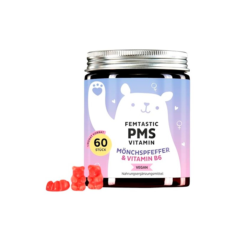 Erlebe mit Femtastic PMS Vitamins, deinem maßgeschneiderten Nahrungsergänzungsmittel, das speziell für die einzigartigen Anforderungen der weiblichen Hormontätigkeit entwickelt wurde, eine neue Dimension des Wohlbefindens. Unsere besondere Formel, angereichert mit dem Frauen-Vitamin B6, unterstützt nicht nur die Regulierung der Hormontätigkeit, sondern fördert auch die normale psychische Funktion und ein gesundes Nervensystem – vor, während und nach dem Zyklus. Natürliche Unterstützung ohne Hormone: Die Femtastic Bärchen bieten eine natürliche und hormonfreie Lösung, um Frauen mit wertvollen Vitaminen B6 und Mönchspfefferextrakt zu unterstützen. Entdecke die Kraft der Natur für dein Wohlbefinden. Vitamin B6 für mentale Stärke und Hormonbalance: Unser Produkt enthält nicht nur Vitamin B6 für eine normale psychische Funktion, sondern trägt auch zur Balance des Nervensystems und zur Regulierung der Hormontätigkeit bei. Eine gezielte Unterstützung, wenn du sie am meisten benötigst. Erlebe jetzt Femtastic PMS Vitamins und bringe deine Hormone ins Gleichgewicht – für ein ausgeglichenes Wohlbefinden in jeder Phase deines Lebens. Probiere unsere Femtastic Bärchen und erfahre die natürliche Harmonie, die du verdienst. Jetzt probieren und selbst Gutes tun!