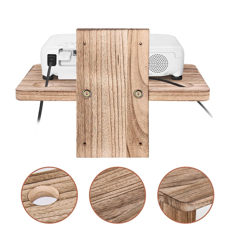 BEARUT Wooden Projector Shelf - Wall Mount - Brown - LED Display - HDMI Connectivity