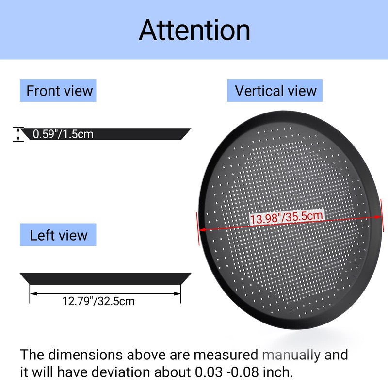 ★ Multiple holes on the bottom, which can let the air pass through and makes your pizza crust nice and crispy.