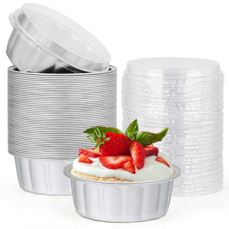 - 【Convenient Use】With the good quality aluminum foil material which is designed for bakery, you can directly put the baking cup on the fire to use (but please do not put the empty cups on the fire), with faster heat conduction to use less energy. 8oz for each pan with lid, it's a good way for serving individual portions for guest in gathering.
