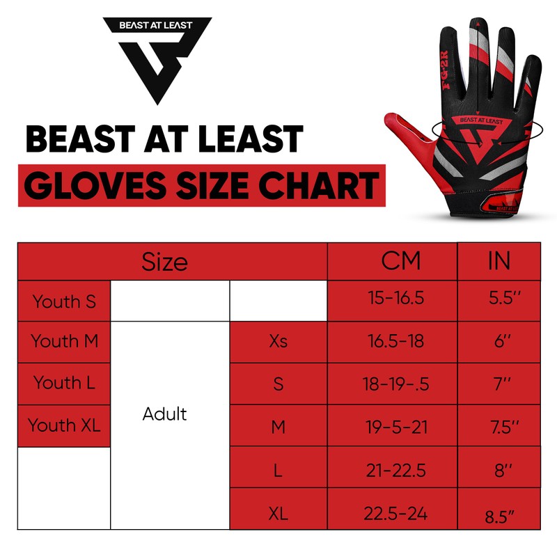 Beast AT Least Youth Football Gloves for Boys- Super Sticky Wide Receiver Gloves for Kids & Adults- Breathable Material & Phenomenal Design (BAL-02) (RED, Youth M/Adult XS)