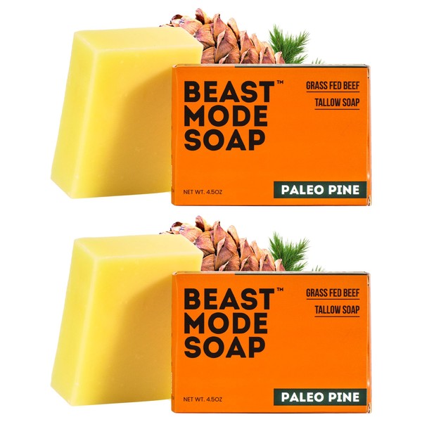 Beast Mode Soap for Men, Paleo Pine, 2-Bar Pack – Natural Grass-Fed Tallow Bar Soap, Exfoliating Sand Blend, Handcrafted, Non-Toxic