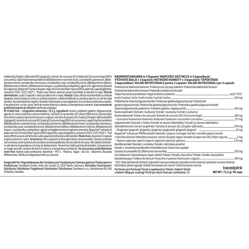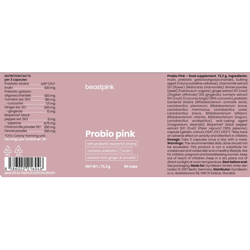 BeastPink BeastPink Probio Pink fr Frauen - Probiotika zur Untersttzung der Darmflora, 10 St?mme mit 10 Mrd. lebenden Kulturen, Pr?biotika aus Inulin & GOS, enth?lt Kamille, Fenchel, Ingwer & Kurkuma, 90 kaps