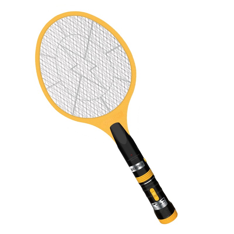 Beastron Bug Zapper Electric Fly Swatter 3000V USB Rechargeable, Mosquito Racquet Killer Racket with 5 LED Torch & 3 Layer Mesh (Large Size), Yellow