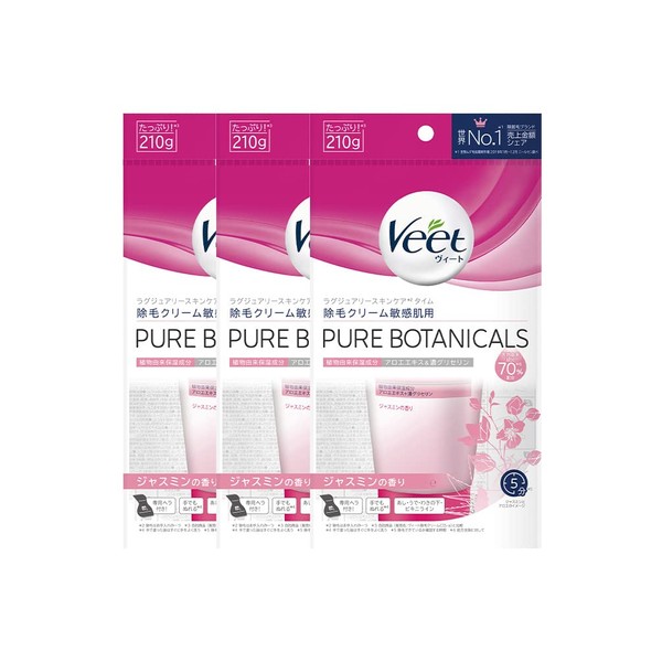Beat Veet Botanicals Hair Removal Cream for Sensitive Skin, 7.4 oz (210 g) x 3 Pieces, Includes Dedicated Spatula, Hair Removal Cream