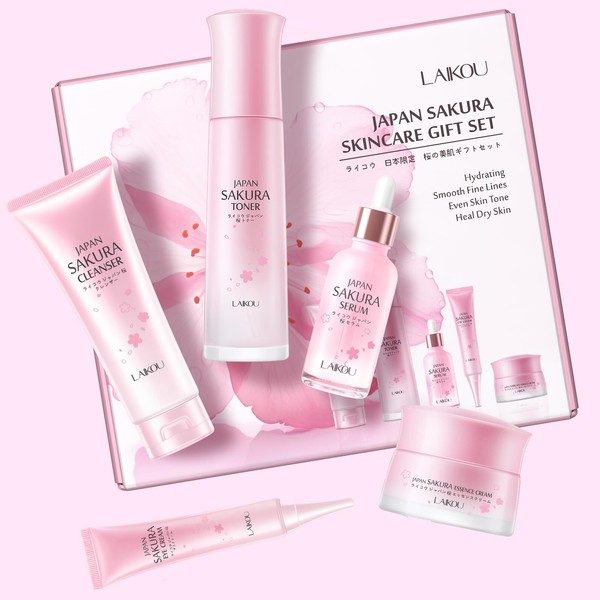 BeauBase Sakura Gesichtspflege Geschenkset Damen, Luxus Kirschblüten Hautpflege Feuchtigkeit Gesicht (A-5pcs)