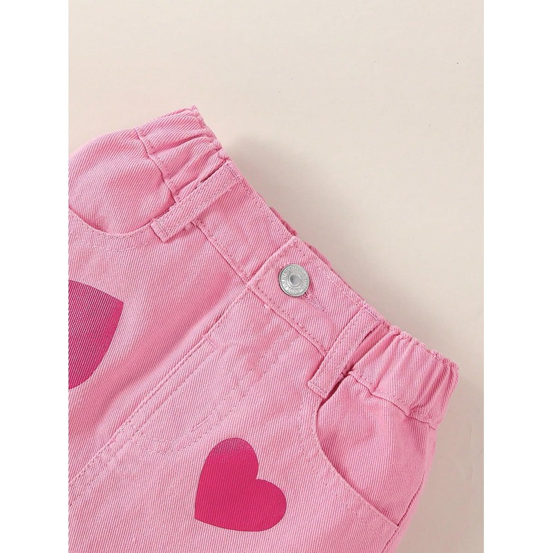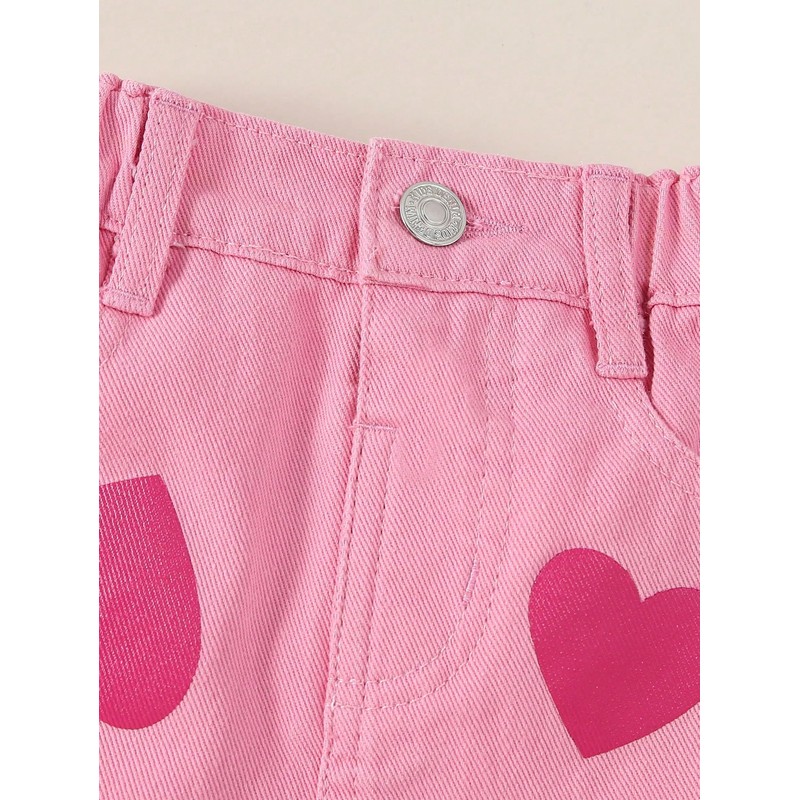 BEAUDRM Girl's Heart Pattern High Waist A Line Skirt Casual Regular Fit Short Denim Skirts Pink 5Y
