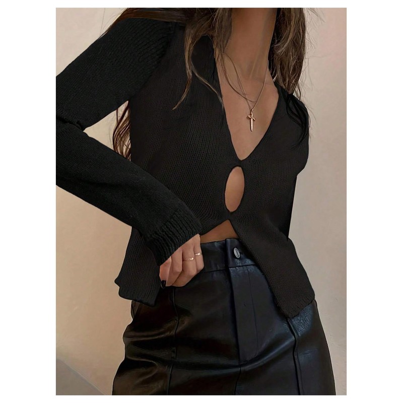 - Features: Cut out, long sleeve, split, solid color, v neck pullover sweaters for women