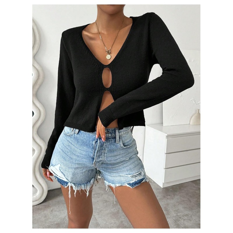 • Features: Cut out, long sleeve, split, solid color, v neck pullover sweaters for women