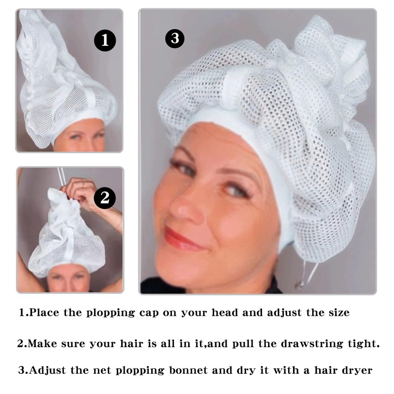 - 【Suiable Occasion】:Bathroom, shower, do beauty, spy, sleep and anywhere you need to keep your hair in style.The net plopping cap is a game-changer for anyone with curly hair, offering a hassle-free way to achieve defined, frizz-free curls every time.