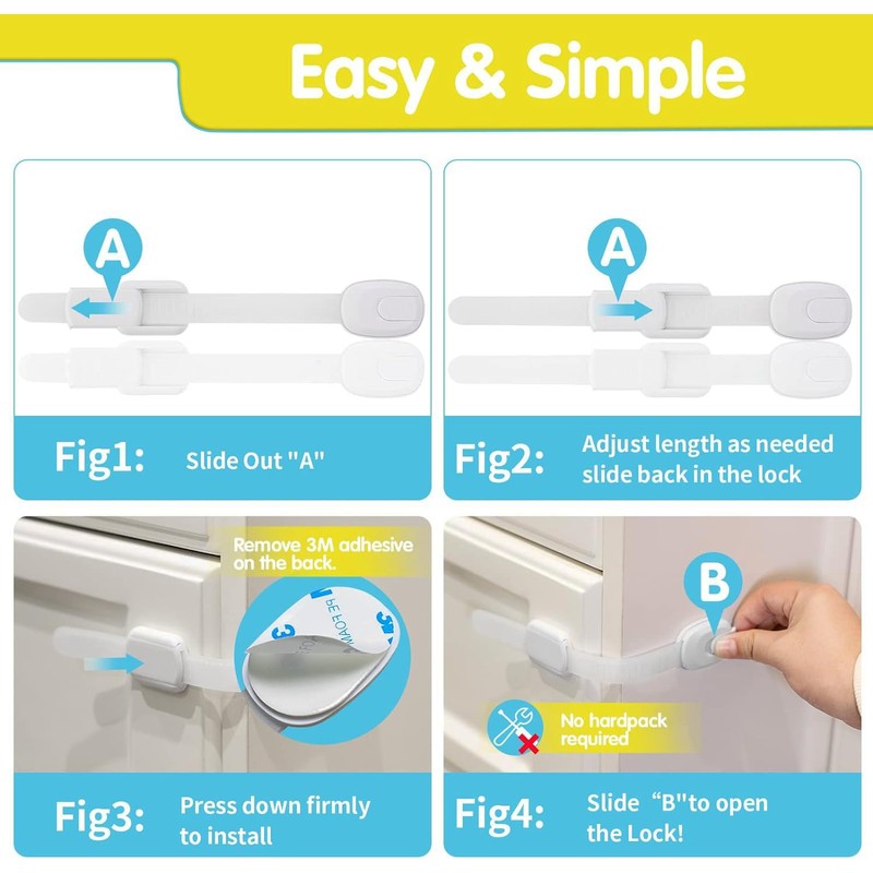 - ๐๐ฎ๐ฅ๐ญ๐ข-๐๐ฎ๐ซ๐ฉ๐จ๐ฌ๐ ๐๐ฌ๐: These child safety locks are not just for babies. They are useful for keeping toddlers, pets, and even elderly family members from accessing potentially harmful areas. Use them on medicine cabinets, pantry doors, or anywhere else where safety is a concern.