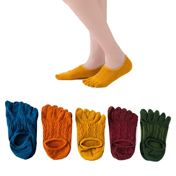 [Beauinnerty] 5本指ソックス レディース くるぶし 靴下 夏 綿メッシ フットカバー 脱げない 5本指靴下 指付きくつした 浅履き 滑り止め 5足セット 22-25cm