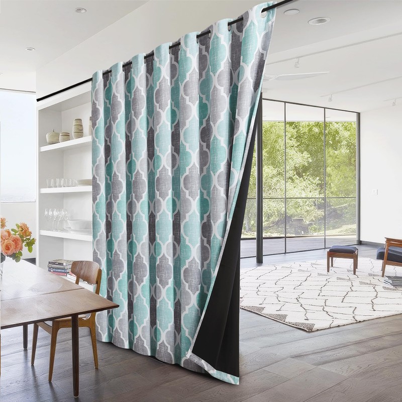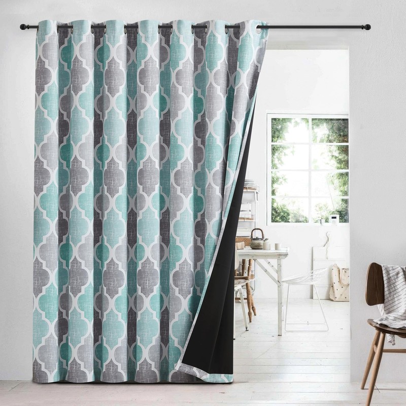 Beauoop 100% Blackout Curtains 84 Inches Long for Patio Sliding Door Aqua Grey Extra Wide Moroccan Geo Room Darkening Thermal Soundproof Room Divider Grommet Window Treatment Drapes,100x84 Set of 1
