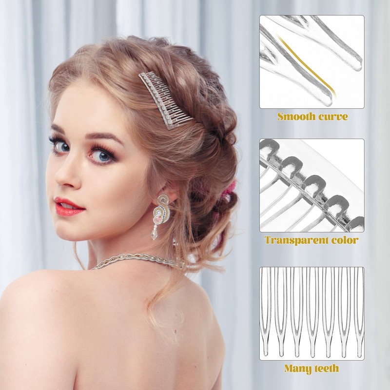Beaupretty 10 pieces transparent plastic hair clip combs, French twist comb, wire hair side combs, bridal wedding veil combs for women