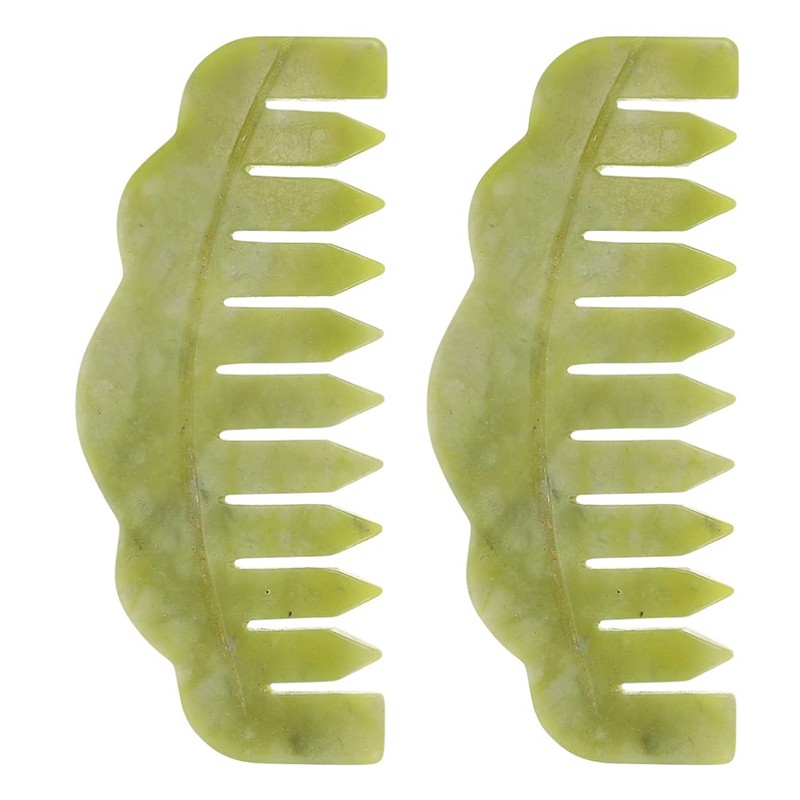 Beaupretty Jade Stone Massage Comb: Jade Plate Scraping Hair Comb 2 Pieces Scalp Massager for Spa Acupuncture Therapy Trigger Point Treatment