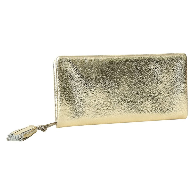Beaure B-0003 Women's Genuine Leather Round Long Wallet with Tassel, gold