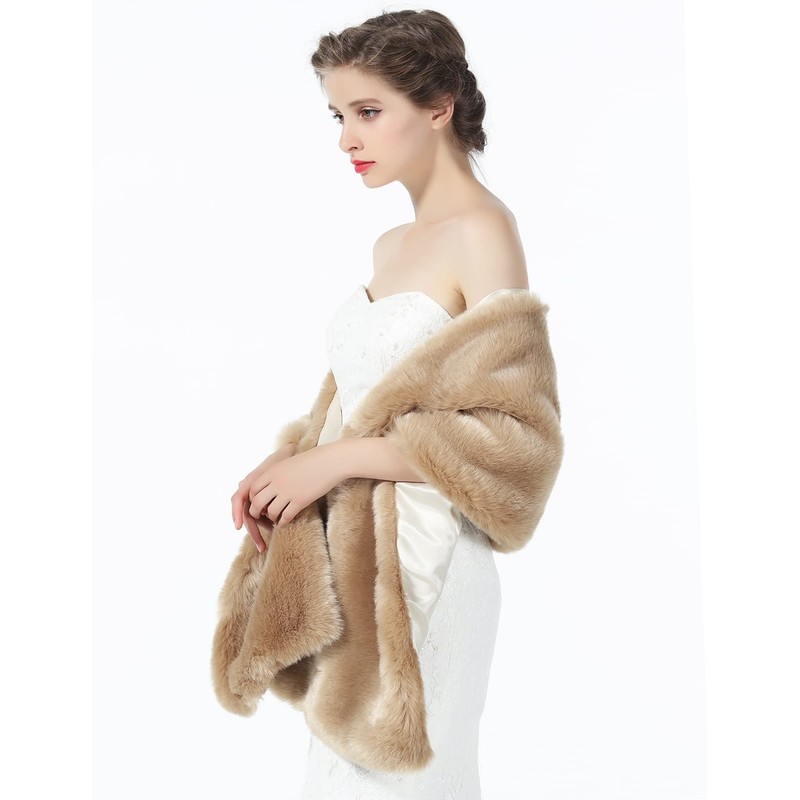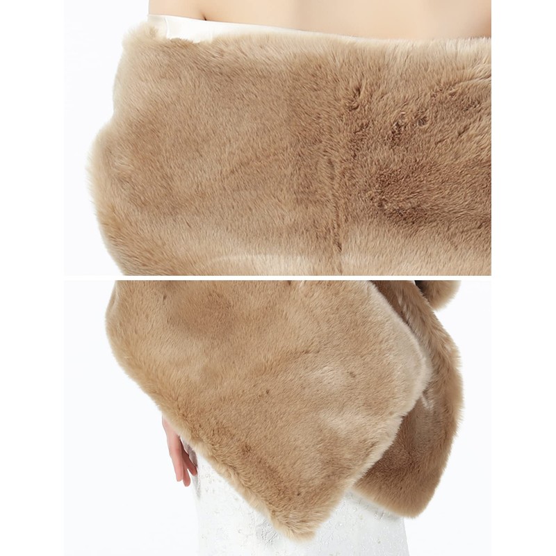 BEAUTELICATE Faux Fur Shawl Stole Wrap Women’s Bridal Wedding Long Shrug Cape for Bridesmaid Evening Winter (7 Colors) Khaki
